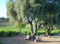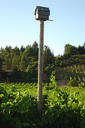 TREES & BIRDS. Trees dont usually fit in modern farming - theyre inconvenient to work around and take up vine spaces. Yet there was method to the old madness. A person (or dog) working in the vineyard needs shade and respite. So, not only have we left trees in the vineyard, weve actually planted more. There are stone pines, columnar cypress, olives, magnolias, redwoods, mountain ash and black, blue and coast live oaks. Numerous nest boxes attract a huge variety of birds which keep the insect and rodent populations in check.