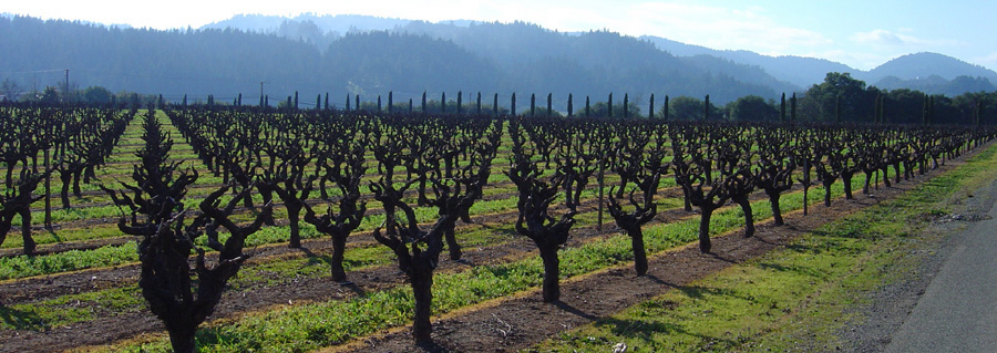 WATER & FOOD. After the first 4 to 6 years of a young zinfandel vines life, watering is stopped. Young and old vines alike grow the entire season with only the water from winter rains. Our cultivation method seals this moisture in the soil. This dry farming is not only well suited to zinfandel grown in this soil with this training and spacing scheme but more inportantly, preserves the unique character of each growing year. We use no added, artificial fertilizers on the vines. Instead we feed the soil, which in turn feeds the vines. Cover crops are planted in the fall after harvest and before the rains begin in November. These, usually a mix of vetch, clover and barley, fix nitrogen to enhance the soils fertility and when mowed and cultivated in, add green matter to improve the soils structure and water-retaining properties. Compost and pomace are used to boost soil that has become tired.